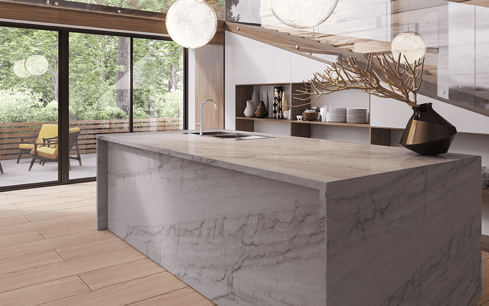 As superfícies de quartzo são pedras industrializadas compostas por 93% de quartzo natural, um dos minerais mais resistentes da natureza, combinados com polímeros e corantes.